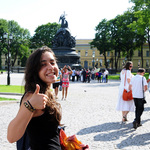 Здравствуйте! Меня зовут Лена и мне 18 лет. Я живу в небольшом городе Вупперталь, Германия. Я хочу поделиться с Вами своими впечатлениями о сказочной поездке в Санкт-Петербург. Замечательная программа " Здравствуй, Россия!" даёт необыкновенно важную возможность детям, которые живут за границей, посетить самые прекрасные места России. Мне посчастливилось познакомиться с достопримечательностями Санкт-Петербурга. За 9 дней пребывания в Санкт-Петербурге мы посетили самые важные соборы, дворцы и музеи этого города, такие как: Эрмитаж, крейсер " Аврора" , Пискарёвское кладбище, музей-квартира А.С. Пушкина и многие другие. А также мы побывали в близлежащих городах: Великий Новгород, Пушкин, Петергоф, Кронштадт. Мы смогли посмотреть только маленькую частъ Санкт-Петербурга, которая оставила огромный след в наших сердцах. Пускай мы сильно уставали, пускай не было свободного времени, пускай не нравилась еда, всё равно я очень благодарна за этот шанс. За это время Питер стал для меня домом, и я очень не хотела уезжать.