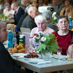 А еще, в этом большом и светлом зале, ветеранов и блокадников ждали празднично накрытые столы, где они, по традиции, могли поднять фронтовые сто грамм. И первый тост, конечно же, был "За победу!"