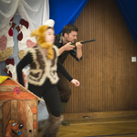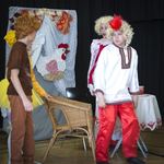 Зрители оказались в плену происходящего с первого появления представителей семьи Ларсон, где свято пытаются сохранить семейные традиции, где главная цель воспитания – обучить детей хитрости. Роль папы Лиса замечательно сыграла Серафима Герасимова, точно смогла передать характер мамы Лисы - Кандлен Глория, роли детей – Лабаны и Людвига - блестяще исполнили Кульман Ирина и Смирнов Максим. Они прожили свои роли весело, с настроением и очень эмоционально, и зрителю было понятно, что сами актёры получают удовольствие от своей игры. Две роли сыграла Юля Юдович: зайчонка Юкке и Туты Карлссон – друзей Людовика. Обе эти роли стали такими яркими и такими талантливыми, что эти герои сразу полюбились зрителю. Точно смогли передать характер своих героев и другие актёры. Великолепно справились со своей задачей Вероника Лайгерт (мама Курица Карлссон) и Беккер Лукас (папа Петух Карлссон). Не менее ярко сыграли свои роли Микерин Андрей (Ёжик), Деппе Дженни (Белочка). Когда они произносили монологи, зритель от души смеялся. (Дженни ещё сыграла и дочь охотника). Очень талантливо сыграла свою роль Наташа Шарлай (Максимилиан). Ей одинаково убедительно удалось передать такие чувства, как недоумение и радость, огорчение и преданность своему хозяину. И таким естественным было появление на сцене взрослого актёра Штейна Дмитрия (по сценарию он охотник ), что это никого не удивило, тем более он появился со своей дочкой Штейн Дашей ( по сценарию она тоже его дочь). Всё, что увидел и услышал зритель в этот день со сцены, запомнится в первую очередь благодаря таланту маленьких актёров, а ещё благодаря тем, кто приложил немало усилий для подготовки декораций, кто подготовил костюмы, тем, кто подобрал музыку к спектаклю. Всем им огромное спасибо. Костюмы (костюмер Куриземба Мадалена) и декорации (художник – декоратор Кем Марина) сделали спектакль зрелищным, красочным. Музыка наполнила спектакль звуками, украсила его, создавая особенное настроение. Действие пьесы часто происходило на природе, и очень удачно в этот момент звучала фонограмма «Пение птиц».