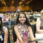 В музыкальном блоке зрителей ожидали приятные сюрпризы – задорный украинский танец в исполнении коллектива «»Звёздочки», рук. Е. Воркуль, г.Гиссен; танец озорных «Поварят» , танцевальная студия «Ритм», коллектив «Дебют», рук. Евгения Хоффманн, г.Ханау. Девочки – крошки из детского вокального ансамбля «Радуга», руководители С. Володарская и И.Строганова, порадовали песнями «Наша мама» и «Из чего же сделаны наши мальчишки». Но, когда на сцену вышла одиннадцатилетняя Даша Эстрада из Висбадена, зал просто замер. Чистым, звенящим голосом девочка запела песню «Крылатые качели». Было такое впечатление, что люди в зале не дышат, они просто растворились в хрустальных звуках, идущих со сцены. А потом - заслуженные овации. И все в один голос: «Какая талантливая девочка!» Творческих успехов тебе, Дашенька!