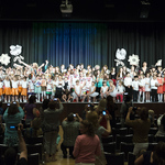 Завершали фестивальную программу хозяева, ученики школы «Исток». Даниэла Дорощенко читала стихотворение З. Александровой «Таня пропала». У восьмилетней девочки замечательная способность перевоплощаться. Зрители увидели и ленивого кота, и воробышка-попрыгунчика, и вредную хрюшку, и добродушного щенка, хотя у микрофона стояла одна Даниэла! Катя Беккер убедила зрителей, что у конфет тоже есть чувства, когда прочла «Балладу о конфете» А. Усачёва. Многие сладкоежки в зале испытали раскаяние, слушая Катю. А строки «...хочется жить без опаски. И верить лишь в добрые сказки!» всегда актуальны в реальной жизни!