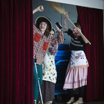 Талантливые юные исполнители поставили этот спектакль под руководством А.Ю.Летовт-Ворбек , звукорежиссёром была ученица 8 класса Калачевская Валерия, а украшали сцену яркие декорации, созданные юными художниками группы ИЗО под руководством Кем М.А.
