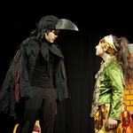 Вот наконец гаснет в зале свет. Наступает тишина. Занавес открывается, и появляется маленькая девочка в наряде Бабы-Яги. Она ещё не сказала ни одного слова, а просто «про себя» читает заклинания из «Колдовской книги», сопровождая чтение магическими движениями рук, а зритель уже полюбил её. Всё вокруг оживает, как только этот очаровательный персонаж появляется на сцене. С этой ролью великолепно справляется Анастасия Гришина. На протяжении всего действа рядом с маленькой Бабой-Ягой находится старый мудрый ворон Абрахас (Смирнов Максим). Он трогательно заботится о своей подопечной. Абрахас строго следит, чтобы она вовремя поела, чтобы ей было удобно и тепло спать, а если надо, то он оденет на её маленькие ножки тёплые тапочки или закроет своими крыльями, спасая от ветра. Маленькая Баба-Яга очень уважает своего друга и наставника, но делает всё по-своему. Такой уж у неё характер.