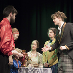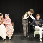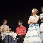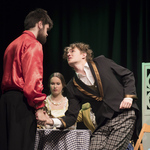 Всем известно утверждение маститых режиссёров о том, что лучшие актёры – это дети. Они искренни, непосредственны, редко испытывают страх перед сценой, освещением и т.д. Самый юный участник спектакля Максим Яровой ещё раз подтвердил эту аксиому. Появление на сцене совершенно кукольного персонажа с обворожительными кудряшками в русской рубашке, красных сапожках умилило всех мамочек и бабушек в зале и привело в восторг девочек в возрасте 8 лет. А естественная манера поведения и, как бы между прочим, произносимые реплики в нужном месте и в нужное время указывают на то, что в «Истоке» есть кому играть и Буратино, и домовёнка Кузю, и Ивана Царевича☺ Кстати, Борис Гальперин, сыгравший Чебакова, тоже начинал с ролей озорных малышей – плохишей. А на сцене в воскресенье зрители увидели прожжённого плута с претензией на аристократизм, охотника за приданым. Совершенно циничную, беспринципную самовлюблённую личность с легким налётом светскости и насмешливым выражением на лице. Те, кто знает Бориса в жизни, аплодировали такому перевоплощению, а те, кто видел просто Чебакова на сцене, восхищались точной передачей образа.