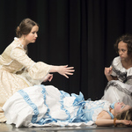 Ну, а Говорилиху запомнили , конечно, же все зрители в зале! Яркая, решительная, хитрая бестия, а в действительности зависящая от капризов и подачек женщина, которая стремится, точно так же как и Бальзаминов, обеспечить своё будущее. Анастасии Хайдрих удалось убедить зрителей, что свои две тысячи целковых она всё-таки получит! То есть сваха без гонорара не останется. Было очень интересно наблюдать из зала не только за перипетиями сюжета, а и за тем, как играют в дуэте (чаще всего) ученики (юные актёры) и наставница – руководитель студии. В жизни ведь достаточно трудно возразить старшему по возрасту человеку или учителю. А на сцене? Всё получилось, как задумано – и Устинька делает Говорилихе замечание, и Бальзаминова стыдит сваху за пережитое унижение, и Михайло Дмитриевич судом угрожает. Отвели душу, не всё ж режиссёру командовать!