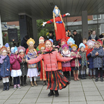 17 февраля в нашем школьном дворе закружились весёлые хороводы (руководитель – Штейн Е.В.), зазвучали задорные народные песни да частушки в исполнении певцов вокального ансамбля Доремифасолька (руководитель – Белашова Н.Ф.) и взрослого вокального коллектива Девчата (руководитель – Клейнер Л.Д.), забренчали да застучали ложкари (руководитель – Цер Н.Л.), пустились с Медведем в пляс разудалые Скоморохи и Подруги Скоморохов! Это пришла в ИСТОК шумная, сытная, яркая Широкая Масленица! И канаты тянули, и подушками бились, и на ходулях передвигались, и в мешках прыгали, и на лыжах мчались, и «снежками» в мишень целились, и загадки отгадывали, и в Ручеек играли да не забывали при этом лакомиться блинами, пирогами, пирожками, приготовленными умелыми руками Истоковских хозяюшек! Во дворе не смолкали песни и смех, шутки и прибаутки! И над всеми возвышалась наша нарядная кукла Масленицы в сопровождении тёплого улыбающегося Солнца!