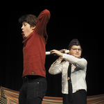 Замечательный тандем Насти Гришиной и Алины Короленко и в этом спектакле был на высоте. Романтичная грабительница с движениями и жестами балерины и учительница с повадками укротителя диких животных - Настя и Алина играют эти роли по очереди (на школьной сцене и в городском театре) и полностью перевоплощаются каждый раз в любой из этих образов. Постоянное участие девочек во всех творческих школьных проектах помогает им чувствовать себя на сцене совершенно свободно и уверенно перед лицом многочисленных зрителей.
