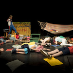 «А дети? Дети там были? Что случилось с ними?» – спросите вы. А дети в течение всего представления прожили одну замечательную жизнь вместе с героями спектакля, потому что это была сказка с необычными героями, невероятными превращениями и счастливым концом! Царь в шортах и на самокате, писатель с именем Макакий, вечно выпадающий из гамака, учитель художественного кувыркания в ластах, грабительница, которая ссорится потому, что обожает мириться,- вот такие удивительные персонажи появлялись на сцене!