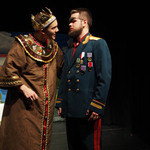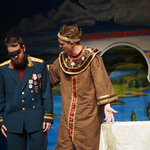 А уж Царь необыкновенно хорош. Такой милый деспот, самодур и мракобес. Хочется возненавидеть, а смеешься. Именно таким увидел свой персонаж Максим Смирнов. Под стать ему Генерал – Эрнест Абрамов. Тупой, самовлюбленный солдафон. Рядом с ними кокетливая Баба-Яга, Настя Гришина, выглядит лукавой умницей и на её козни даже трудно обижаться. Народную мудрость как всегда в русских сказках олицетворяет Нянька – Изабелла Калнина.