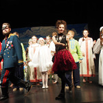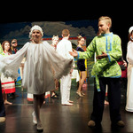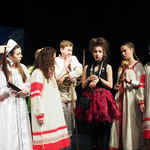 В первые же минуты зал охватило ощущение русского гулянья. Простые и от того говорящие костюмы не отвлекают, а помогают воспринять дух русской сказки. Похвала костюмерам Марине Кем и Ольге Кизий.