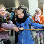 И там начинается настоящее масленичное веселье : кружатся хороводы, устраиваются весёлые состязания – прыжки с блинами, бег на метлах, бой подушками, проводятся уже полюбившиеся детям народные игры «Ручеёк», «Золотые ворота», «Цепи кованые». И, конечно же, все ждут – не дождутся, когда же наступит кульминация праздника – перетягивание каната, ведь каждый хочет показать свою силу и ловкость.