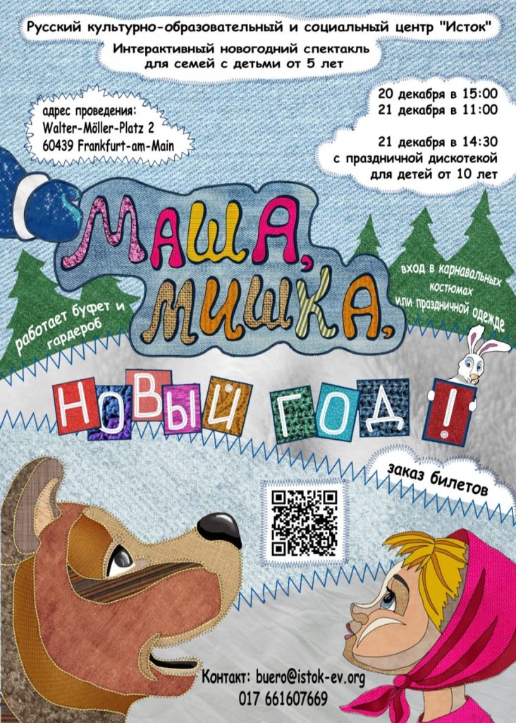 Русский культурно-образовательный и социальный центр ИСТОК приглашает вас на новогодние представления «МАША, МИШКА, НОВЫЙ ГОД! » с участием Деда Мороза, Снегурочки и сказочных героев! для семей с детьми от 5 лет.