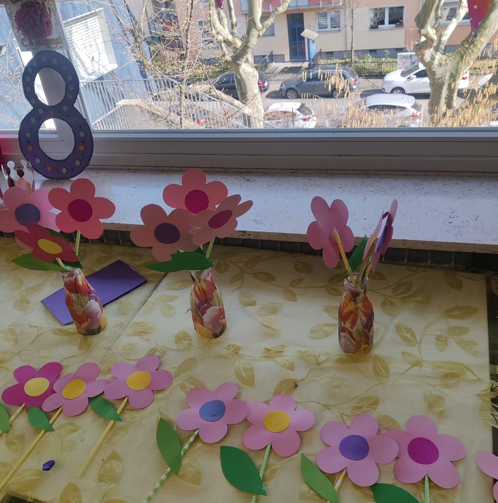 празднично украшен яркими цветами и цифрой 8. Все ученики готовят для любимых мам открытки и поделки, ведь это самый бесценный подарок. Мамы радуются тому, что в этот весенний день получают поздравления на своём родном языке, и украдкой смахивают слезу, читая искренние признания в любви: «Дорогая мама, ты у меня самая красивая, самая ласковая, самая