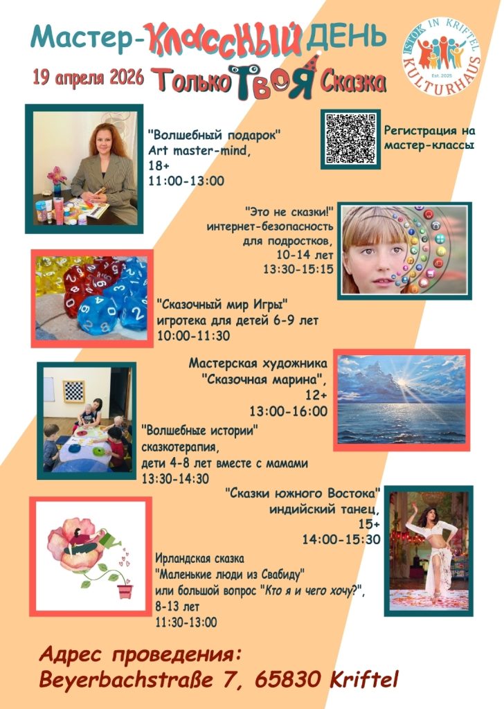 13.30-14.30 „Волшебные истории“, сказкотерапия, дети 4-8 лет вместе с мамами (Алина Кёлер)